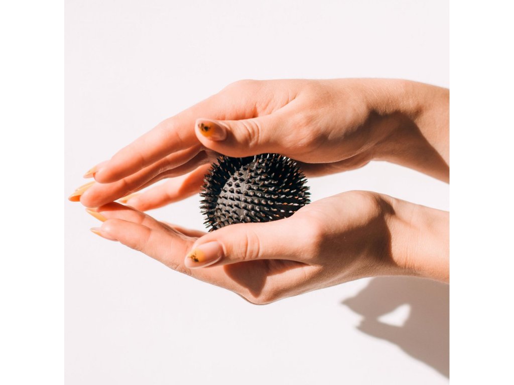 Ako pracovať s "ihlovou guľou". Odporúča sa robiť ľahké pohyby alebo ľahké tlaky v dlaniach, podobné pohyby na nohe by sa mali vykonávať pomocou rúk alebo zľahka valcovať po podlahe bez tlaku.