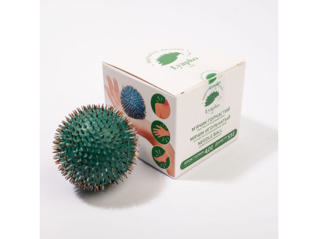 Aplikačné zariadenie Lyapko "Ihlová guľa", guľička s priemerom 55 mm, vzdialenosť medzi ihlami je 4 mm, počet ihiel je 656.